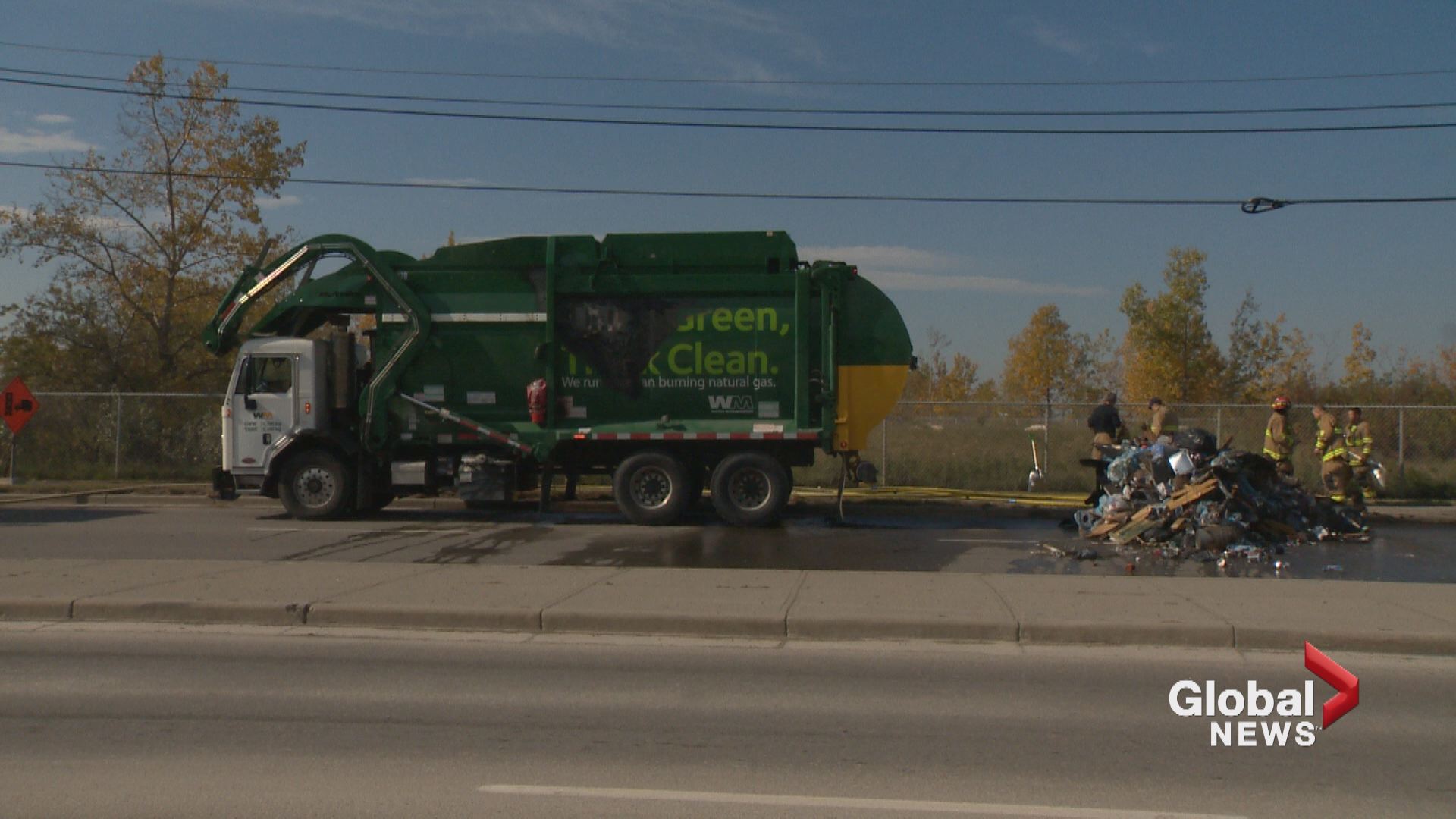 Garbage Truck Forced To Dump Load In Southeast Calgary After It Caught Fire Calgary Globalnews Ca